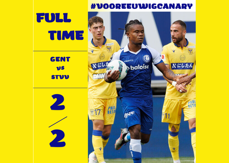 G*NK en STVV leverden bijzonder veel strijd, maar konden niet scoren. In het absolute slot leken zowaar de kanaries nog met de volle buit aan de haal te gaan, het doelpunt van Gianni Bruno werd echter terecht afgekeurd voor buitenspel.