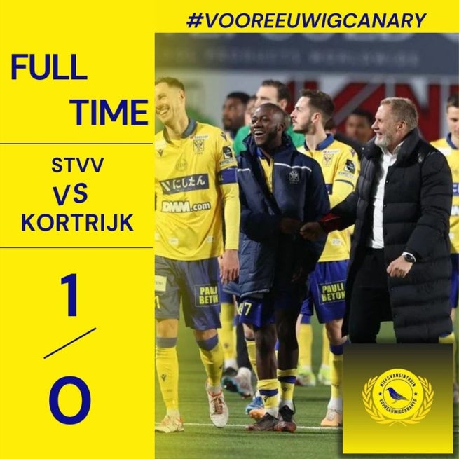 STVV komt in de rangschikking op gelijke hoogte met de buren uit G*NK. Omdat het doelpuntensaldo van de vicekampioen een pak beter is, zullen De Kanaries toch nog ergens een slag moeten slaan om die achtste plek ook echt in handen te krijgen.