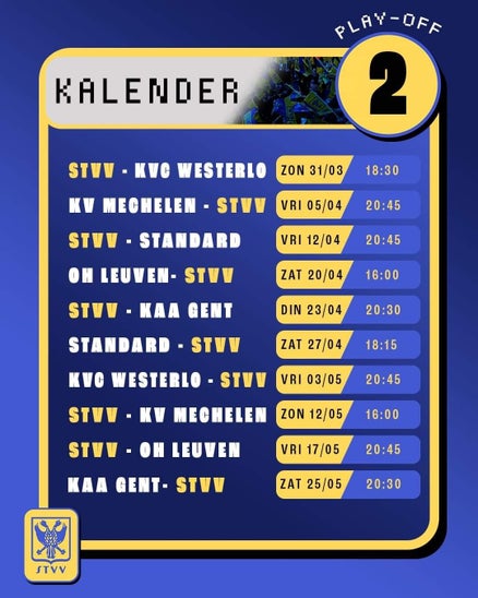 - Opvallend: STVV heeft al sinds januari geen uitwedstrijd meer verloren. Al 11 wedstrijden op rij neemt het punten mee naar huis.