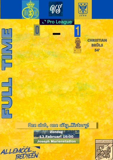 Een penaltygoal van Christian Brüls was beslissend, Dante Vanzeir miste in blessuretijd nog een uitgelezen kans op de 1-1 door een penalty over te knallen. STVV doet waar de topclubs niet in geslaagd zijn: Union verslaan. De koploper beet zijn tanden stuk op een compact spelend STVV dat nu 34 punten telt in het klassement!