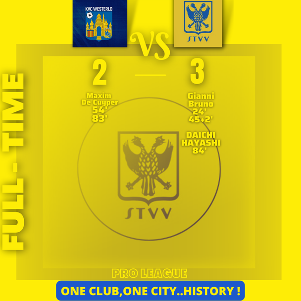 STVV kwam vlak voor de pauze op een 0-2 voorsprong, maar gaf die volledig uit handen, Hayashi maakte er in de rebound 2-3 van.de kanaries hebben nu 20 punten op plaats 9, dat zijn er 2 minder dan de kemphanen.