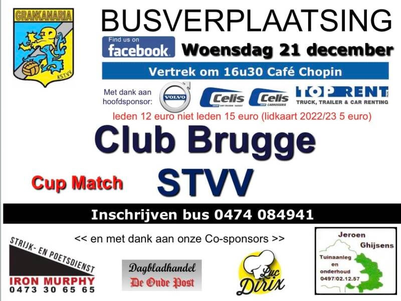 Neem je liever de bus, om er een sfeervolle en veilige verplaatsing van te maken? Er zijn verschillende supportersclubs die voor de trip naar Brugge een bus inleggen:
